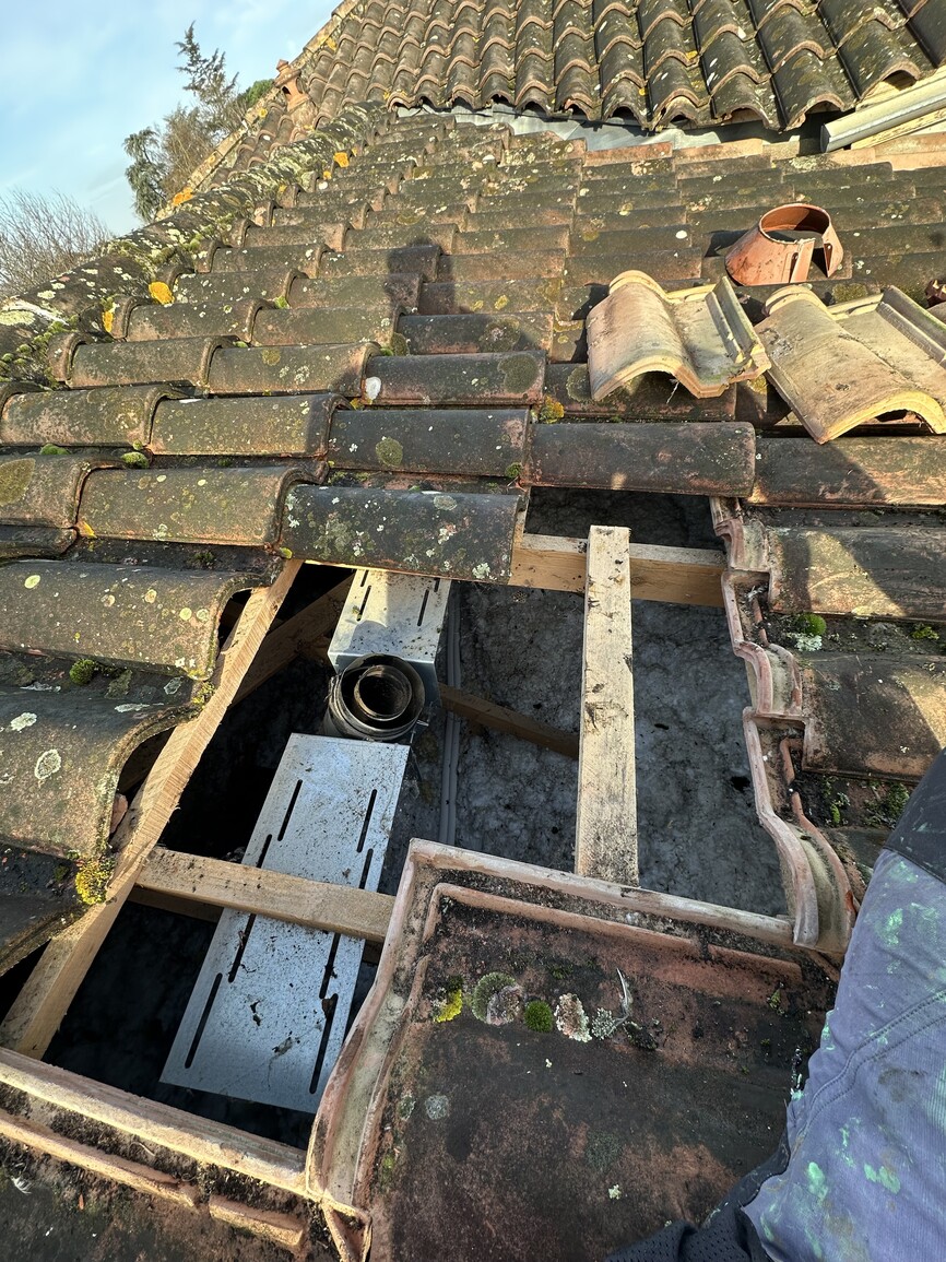 Enlèvement de poêle à granulés, pose de tuiles romanes